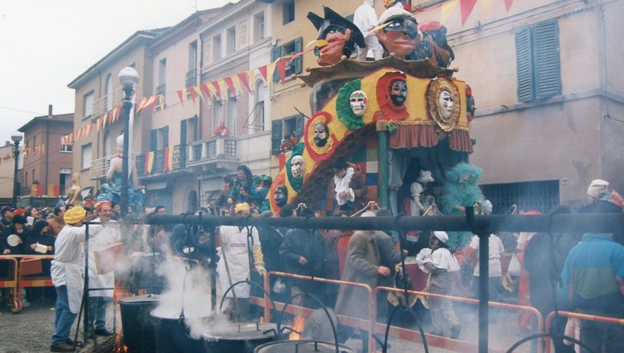 Nel territorio di Borgo Tossignano è presente e radicata una tradizione carnevalesca le cui origini risalgono al XVII secolo, quando il Marchese Leonardo di Sermoneta, governatore di Tossignano, concedeva al popolo di festeggiare l’ultimo giorno di Carnevale, distribuendo polenta agli abitanti del luogo. I tradizionali festeggiamenti del “Martedì Grasso” sono legati sia alla distribuzione di pietanze locali (polenta e maccheroni), sia alla realizzazione di carri allegorici che riprendono questo tema. A partire dagli anni ’80, la manifestazione ha assunto una maggiore rilevanza grazie anche alle sfilate in maschera e alla presenza dei carri allegorici per le vie del paese. Il coinvolgimento e la partecipazione della comunità locale, e in particolare dei più giovani, sono stati inoltre incrementati grazie alla realizzazione di laboratori per la creazione di maschere e mostre espositive temporanee dedicate al Carnevale.