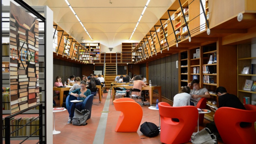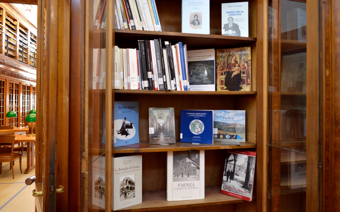 Originata dalla soppressione napoleonica dei conventi sul finire del 1700, la Biblioteca comunale Manfrediana di Faenza fu aperta nel 1818 dentro il Palazzo degli Studi, già collegio dei Gesuiti, per essere trasferita nel 1825 nell’ex convento dei Servi di Maria. Prende il nome dai nobili Manfredi, signori della città tra XIV e XVI secolo. Il patrimonio antico, prevalentemente umanistico e religioso, integrato da libri e carte sulla storia locale, è stato colpito dai danni della Seconda guerra mondiale, che hanno distrutto circa 70.000 volumi. Oggi la Sala Dante, restaurata nel 2004, offre 60 posti per lettura e conferenze.
