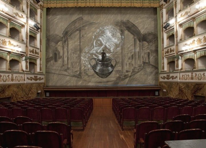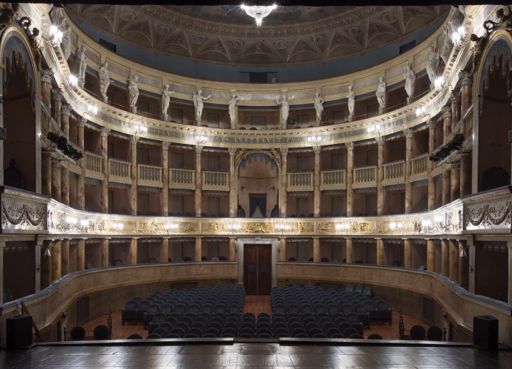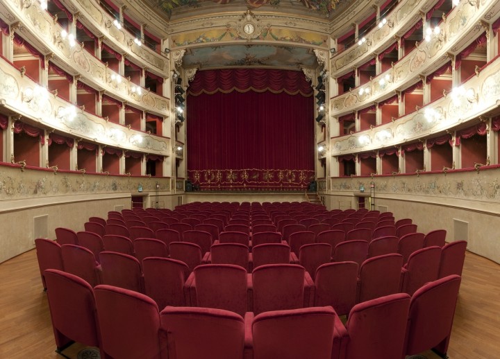 Tipico teatro all’italiana, con cavea a ferro di cavallo e tre ordini di palchi, è stato in funzione fino al 1929, andando poi in disuso e subendo danni durante la Seconda guerra mondiale, quando fu ridotto ad accampamento dai soldati tedeschi. Due restauri integrali, negli anni Ottanta e poi all’inizio dei Duemila, lo hanno riportato in vita, salvaguardando gli arredi e le suppellettili ancora integre, compreso il magnifico sipario dipinto da Adeodato Malatesta con l’effigie di Esopo che narra favole ai pastori.