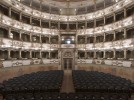 Un giardino nel retro del teatro e una teoria di busti con personaggi importanti della città delimita lo spazio teatrale ed esalta il ruolo nello spazio cittadino. La pianta della platea è a ferro di cavallo con 22 palchi al primo ordine, 22 al secondo e 24 al terzo, un palco reale e un loggione. La platea, con pavimento in legno recentemente rinnovato, contiene circa 500 persone.
