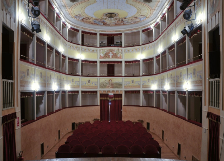 La platea, i quattro ordini di palco e il loggione sono sovrastati dal soffitto dipinto da Giovan Battista Borghesi e dall’astrolampo, il grande lampadario in bronzo dorato forgiato dalle officine Lacarrière di Parigi. A metà dell’Ottocento la decorazione originale in stile neoclassico viene virata in chiave neorinascimentale da Girolamo Magnani, scenografo preferito di Verdi, attivo poi nel Teatro di Fidenza.
