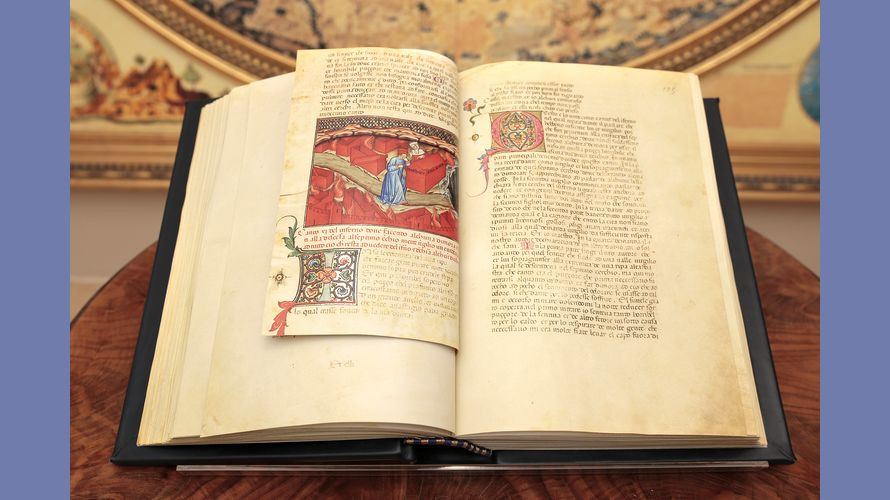 Di Dante non è rimasto alcun documento autografo, in compenso il suo capolavoro ebbe fin dagli inizi una larghissima diffusione, accompagnata dalla pratica di arricchire il testo con immagini realizzate dai migliori illustratori. Il manoscritto “Parigi-Imola” è una delle copie medievali più decorate: fu eseguita intorno al 1440 per il duca di Milano Filippo Maria Visconti e le sue preziose illustrazioni sono opera del “Maestro delle Vitae Imperatorum”, uno dei miniatori più celebri dell’epoca.