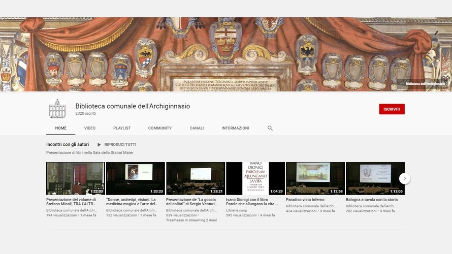 Ricerca e conservazione sono le due attività principali della Biblioteca comunale dell’Archiginnasio, concentrate sul settore umanistico e sulla storia di Bologna. Il canale YouTube propone: