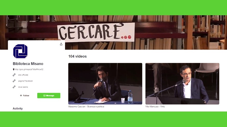 Sul canale Vimeo della Biblioteca e sul canale YouTube del Comune di Misano Adriatico si possono rivedere anche gli incontri delle altre rassegne: “La biblioteca illuminata”, “I nodi della vita”, “J’accuse: nessuno è innocente”, “Parole Controtempo” e molte altre.
